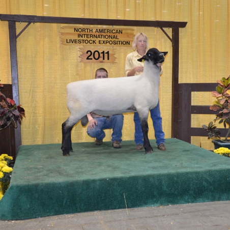 This winning ewe lamb went on to win Reserve Champion Junior ewe lamb at the Open class show @Iowa State Fair and Grand Champion Ewe at the Iowa Suffolk Junior Show at the Iowa State Fair. Congratulations to Amber Hammes on her great showing of this stylish ewe lamb. Watch for them in 2012...there is more to come. She is sired by MY WAY. The best news is there are many more females like her. Flash!! this young female is going to Louisville.
